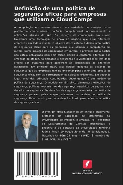 A computação em nuvem oferece uma variedade de serviços como plataforma computacional, potência computacional, armazenamento e aplicações através da Web. Os serviços de computação em nuvem trouxeram uma tecnologia de apoio ao negócio que atrai diferentes empresas em todo o mundo. O objetivo deste estudo é definir uma política de segurança eficaz para as empresas que utilizam a computação em nuvem. Numa situação de computação em nuvem, é provável que a política não esteja actualizada nem seja eficaz, devido à constante alteração das ameaças de ataque. As ameaças à segurança e a vulnerabilidade têm dado crédito aos atacantes para acederem às informações de diferentes utilizadores. Em primeiro lugar, este estudo identifica os desafios de segurança que as empresas têm de enfrentar para definir uma política de segurança eficaz com as correspondentes soluções existentes. Em segundo lugar, uma das principais contribuições deste estudo é um modelo de política de segurança. O modelo contém cinco elementos: objectivos de segurança, políticas, mecanismos de segurança, requisitos de segurança e desafios de segurança. Os desafios de segurança abordados na política de segurança passam pelas etapas existentes no modelo de política de segurança. De um modo geral, o modelo é utilizado para definir uma política de segurança eficaz.