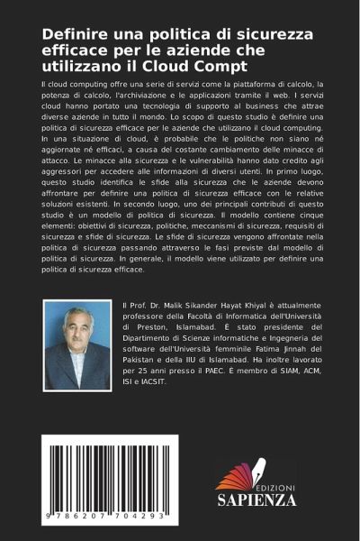 Il cloud computing offre una serie di servizi come la piattaforma di calcolo, la potenza di calcolo, l'archiviazione e le applicazioni tramite il web. I servizi cloud hanno portato una tecnologia di supporto al business che attrae diverse aziende in tutto il mondo. Lo scopo di questo studio è definire una politica di sicurezza efficace per le aziende che utilizzano il cloud computing. In una situazione di cloud, è probabile che le politiche non siano né aggiornate né efficaci, a causa del costante cambiamento delle minacce di attacco. Le minacce alla sicurezza e le vulnerabilità hanno dato credito agli aggressori per accedere alle informazioni di diversi utenti. In primo luogo, questo studio identifica le sfide alla sicurezza che le aziende devono affrontare per definire una politica di sicurezza efficace con le relative soluzioni esistenti. In secondo luogo, uno dei principali contributi di questo studio è un modello di politica di sicurezza. Il modello contiene cinque elementi: obiettivi di sicurezza, politiche, meccanismi di sicurezza, requisiti di sicurezza e sfide di sicurezza. Le sfide di sicurezza vengono affrontate nella politica di sicurezza passando attraverso le fasi previste dal modello di politica di sicurezza. In generale, il modello viene utilizzato per definire una politica di sicurezza efficace.