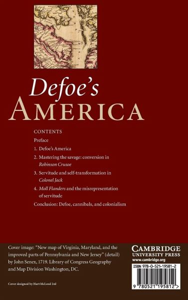 The Americas appear as an evocative setting in more than half of Daniel Defoe's novels, and often offer a new beginning for his characters. In the first full-length study of Defoe and colonialism, Dennis Todd explores why the New World loomed so large in Defoe's imagination. By focusing on the historical contexts that informed Defoe's depiction of American Indians, African slaves, and white indentured servants, Dennis Todd investigates the colonial assumptions that shaped his novels and, at the same time, uncovers how Defoe used details of the American experience in complex, often figurative ways to explore the psychological bases of the profound conversions and transformations that his heroes and heroines undergo. And by examining what Defoe knew and did not know about America, what he falsely believed and what he knowingly falsified, Defoe's America probes the doubts, hesitancies, and contradictions he had about the colonial project he so fervently promoted.