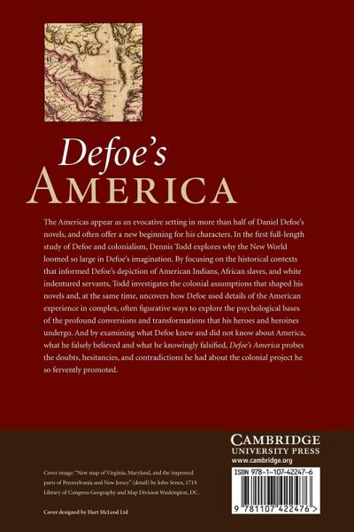 The Americas appear as an evocative setting in more than half of Daniel Defoe's novels, and often offer a new beginning for his characters. In the first full-length study of Defoe and colonialism, Dennis Todd explores why the New World loomed so large in Defoe's imagination. By focusing on the historical contexts that informed Defoe's depiction of American Indians, African slaves, and white indentured servants, Dennis Todd investigates the colonial assumptions that shaped his novels and, at the same time, uncovers how Defoe used details of the American experience in complex, often figurative ways to explore the psychological bases of the profound conversions and transformations that his heroes and heroines undergo. And by examining what Defoe knew and did not know about America, what he falsely believed and what he knowingly falsified, Defoe's America probes the doubts, hesitancies, and contradictions he had about the colonial project he so fervently promoted.