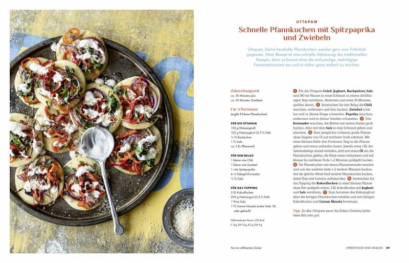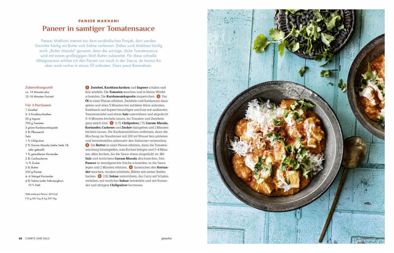 In ihrem neuen Buch aus der mehrfach ausgezeichneten Reihe Deftig vegetarisch widmet sich Anne-Katrin Weber der facettenreichen Welt der indischen Küche einer der traditionsreichsten vegetarischen Küchen der Welt. Für dieses Buch reiste die renommierte Kochbuchautorin und Foodstylistin durch verschiedene Regionen Indiens, tauchte in die aromatische Vielfalt ein und sammelte dabei ihre liebsten indischen Rezepte: würzige Currys, cremige Dals, knusprige Pfannenbrote, aromatischen Reis und verführerische Desserts und Getränke. Die rund 70 Gerichte zeigen, wie einfach es im Alltag gelingen kann, indisch zu kochen mit Zutaten, die gut erhältlich sind, und Zubereitungen, die auch ohne Vorkenntnisse Freude machen. Freuen Sie sich auf Highlights wie Kürbis-Tomaten-Biryani, ein sanftes Paneer Makhani, gefüllte Aloo Parathas oder würzige Linsen-Dals. Dazu knusprige Pakoras, frische Chutneys und unwiderstehliche Süßspeisen wie Gulab Jamun oder Kardamom-Reispudding.