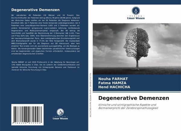 Wir rekrutierten 40 Patienten (16 Männer und 24 Frauen). Das Durchschnittsalter der Patienten betrug 69±11,78 Jahre [36-86 Jahre]. Aufgrund der klinischen Daten stellten wir bei 26 Patienten die Diagnose Alzheimer-Krankheit (AD), bei 7 Patienten eine fronto temporale Lobärdegeneration, bei 4 Patienten eine Lewy-Körperchen-Demenz (LKD) und 3 Patienten wurden als andere Demenzarten (progressive supra-nukleäre Lähmung, kortikobasale Degeneration und Multisystematrophie) eingestuft. Bei AD betrug die Sensitivität und Spezifität der Bestimmung der 3 Biomarker (Abeta (1-42), T-tau und P-tau) 82% bzw. 100%. Eine Übereinstimmung zwischen den Ergebnissen der neuropsychologischen Tests, dem szintigraphischen Erscheinungsbild und dem Biomarkerprofil wurde in 77,5% der Fälle festgestellt. Die myokardiale MIBG-Szintigraphie war für die Diagnose von DD interessant, aber kein einzelner Test erwies sich als ausreichend aussagekräftig, um die Ätiologie zu klären. Die konvergierenden Daten bestimmter paraklinischer Untersuchungen sind bei beginnenden und atypischen Formen erforderlich, insbesondere bei anhaltenden diagnostischen Zweifeln.