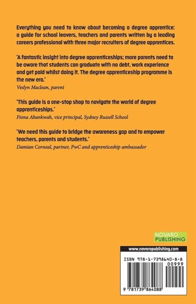 Degree apprenticeships: how to find opportunities and apply Gain a degree while being paid and make a fast start to your career? Degree apprenticeships have become an exciting option for when you leave school. How can you develop the skills to compete? How can you explore all your options to ensure you have choices? Written for you by a champion of under-represented talent, this book tells you where to look, how to apply and how to present yourself. You will hear too from leading employers about how they recruit talent like yours and current apprentices will give you an idea of what it's like being a degree apprentice.