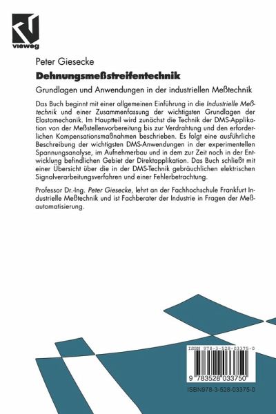 Das Buch beginnt mit einer allgemeinen Einführung in die industrielle Messtechnik und einer Zusammenfassung der wichtigsten Grundlagen der Elastomechanik. Im Hauptteil wird zunächst die Technik der DMS-Applikation von der Messstellenvorbereitung bis zur Verdrahtung und den erforderlichen Kompensationsmaßnahmen beschrieben. Es folgt eine ausführliche Beschreibung der wichtigsten DMS-Anwendungen in der experimentellen Spannungsanalyse, im Aufnehmerbau und in dem zur Zeit noch in der Entwicklung befindlichen Gebiet der Direktapplikation. Das Buch schließt mit einer Übersicht über die in der DMS-Technik gebräuchlichen elektrischen Signalverarbeitungsverfahren und einer Fehlerbetrachtung.