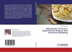 Yacon roots are increasingly being consumed due to its prebiotic and antioxidant activities and its low caloric value. Dehydration methods have been employed to extend its shelf-life, however little academic literature exists on how to best apply drying technologies in order to obtain interesting products. Moreover, there is scarce data about mathematical modeling of osmotic dehydration of foods due to the difficulty of assessing the multicomponent mass flows involved. The application of osmotic treatment before convective drying (osmo-convective drying) provided quality gains to the dried yacon slices, such as low darkening rates and reduction of structural damages normally ascribed to conventional drying. In addition, the heat and mass transfer phenomena were successfully modeled and simulated, providing important data of temperature, moisture content and osmotic agent uptake. Thermophysical properties of yacon as a function of moisture content are also presented. The analysis should help both researchers on modeling food drying processes and designing/optimizing thermal processes applied to yacon and industries interested in producing derivates of this root.