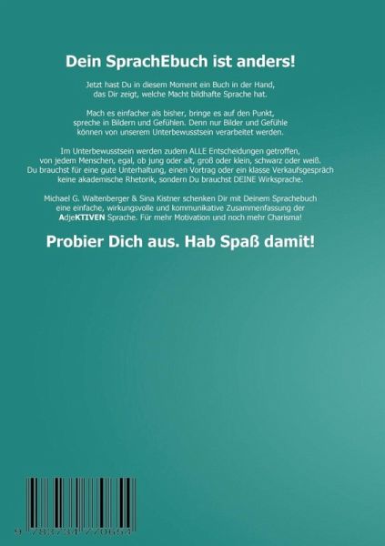 Sprache - ein Aufruf zur Aktivität Jetzt hast Du in diesem Moment ein Buch in der Hand, das Dir zeigt, auf welche Art und Weise Du in Zukunft mit anderen Menschen reden solltest. Mach es einfacher als bisher, bringe es auf den Punkt, spreche in Bildern und Gefühlen. Denn nur Bilder und Gefühle können von unserem Unterbewusstsein verarbeitet werden. Im Unterbewusstsein werden zudem ALLE Entscheidungen getroffen, von jedem Menschen, egal, ob jung oder alt, groß oder klein, schwarz oder weiß. Du brauchst für eine gute Unterhaltung, einen Vortrag oder ein klasse Verkaufsgespräch keine akademische Rhetorik, sondern Du brauchst DEINE Wirksprache. Wusstest Du, dass das, WAS Du sagst, weniger wichtig ist, als WIE Du etwas sagst? Nun, hör auf, an die Decke zu gucken und lese munter weiter.Hab Spaß damit und probiere Dich aus!