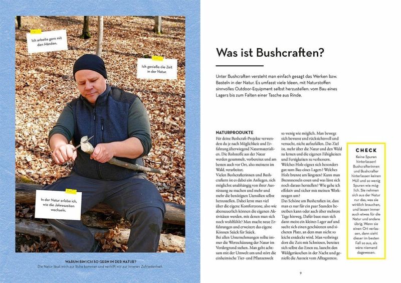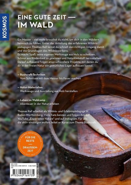 Ein gutes Messer - viel mehr braucht man nicht, um sich in den Wäldern heimisch zu fühlen. Mit dieser hervorragenden Anleitung des Wildnispädagogen Thomas Rall lernt man das Waldhandwerk von Grund auf. Der Leser erfährt, wie er mit dem Messer einfache Werkzeuge aus Holz schnitzt, Schnur aus Rindenbast gewinnt und Naturklebstoff herstellt. Darauf aufbauend folgen anspruchsvollere Projekte, mit denen man sich nach und nach in der freien Natur ein gemütliches Lager schaffen kann. Ausführliche Schritt-für-Schritt-Anleitungen sorgen für ein frustfreies Outdoor-Abenteuer vor den Toren der Stadt..