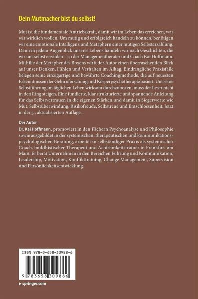 Mut ist die fundamentale Antriebskraft, damit wir im Leben das erreichen, was wir wirklich wollen. Um mutig und erfolgreich handeln zu können, benötigen wir eine emotionale Intelligenz und Metaphern einer mutigen Selbsterzählung. Denn in jedem Augenblick unseres Lebens handeln wir nach Geschichten, die wir uns selbst erzählen - so der Managementberater und Coach Kai Hoffmann. Mithilfe der Metapher des Boxens wirft der Autor einen überraschenden Blick auf unser Denken, Fühlen und Verhalten im Alltag. Eindringliche Praxisfälle belegen seine einzigartige und bewährte Coachingmethode, die auf neuesten Erkenntnissen der Gehirnforschung und Körperpsychotherapie basiert. Um seine Selbstführung im täglichen Leben wirksam durchzuboxen, muss der Leser nicht in den Ring steigen.