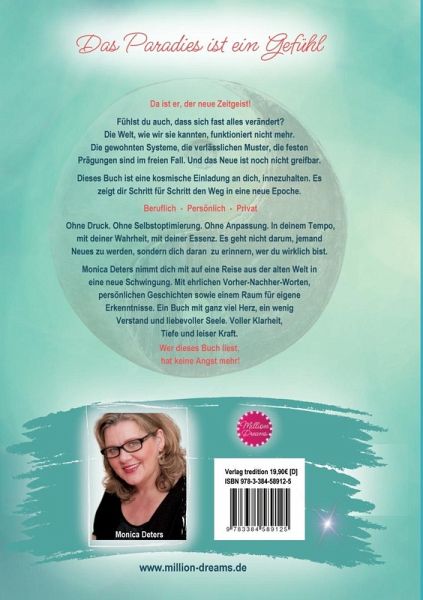 Da ist er, der neue Zeitgeist! Fühlst du auch, dass sich fast alles verändert? Die Welt, wie wir sie kannten, funktioniert nicht mehr. Die gewohnten Systeme, die verlässlichen Muster, die festen Prägungen sind im freien Fall. Und das Neue ist noch nicht greifbar. Dieses Buch ist eine kosmische Einladung an dich, innezuhalten. Es zeigt dir Schritt für Schritt den Weg in eine neue Epoche. Beruflich - Persönlich - PrivatOhne Druck. Ohne Selbstoptimierung. Ohne Anpassung. In deinem Tempo, mit deiner Wahrheit, mit deiner Essenz. Es geht nicht darum, jemand Neues zu werden, sondern dich daran zu erinnern, wer du wirklich bist. Monica Deters nimmt dich mit auf eine Reise aus der alten Welt in eine neue Schwingung. Mit ehrlichen Vorher-Nachher-Worten, persönlichen Geschichten sowie einem Raum für eigene Erkenntnisse. Ein Buch mit ganz viel Herz, ein wenig Verstand und liebevoller Seele. Voller Klarheit, Tiefe und leiser Kraft. Wer dieses Buch liest, hat keine Angst mehr!