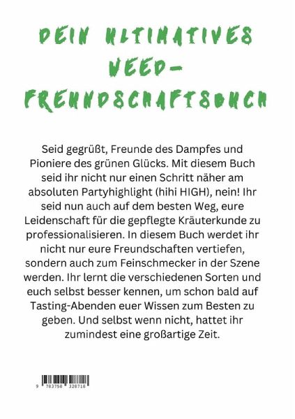 Seid gegrüßt, Freunde des Dampfes und Pioniere des grünen Glücks. Mit diesem Buch seid ihr nicht nur einen Schritt näher am absoluten Partyhighlight (hihi HIGH), nein! Ihr seid nun auch auf dem besten Weg, eure Leidenschaft für die gepflegte Kräuterkunde zu professionalisieren. In diesem Buch werdet ihr nicht nur eure Freundschaften vertiefen, sondern auch zum Feinschmecker in der Szene werden. Ihr lernt die verschiedenen Sorten und euch selbst besser kennen, um schon bald auf Tasting-Abenden euer Wissen zum Besten zu geben. Und selbst wenn nicht, hattet ihr zumindest eine großartige Zeit.