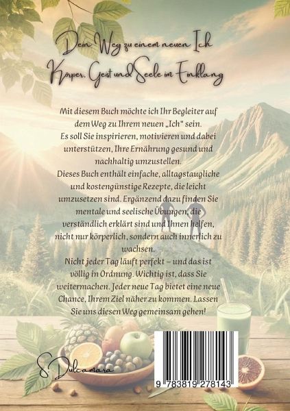 Dieses Buch unterstützt dich dabei, gesunde Routinen aufzubauen und dein Leben aktiv zu gestalten, ohne Druck, ohne Diät. Es enthält strukturierte Wochenpläne mit nährstoffreichen, einfachen Rezepten, Bewegungseinheiten für zu Hause und mentale Übungen wie Affirmationen, Meditationen und ein Vision Board. Dein Weg zu einem neuen Ich begleitet dich 30 Tage lang mit Klarheit, Motivation und Herz. Du brauchst keine teuren Geräte oder Vorkenntnisse, nur den Wunsch, etwas zu verändern. Dieses Buch richtet sich an Menschen, die ihre Gesundheit verbessern, ihr inneres Gleichgewicht finden und dabei authentisch bleiben wollen.