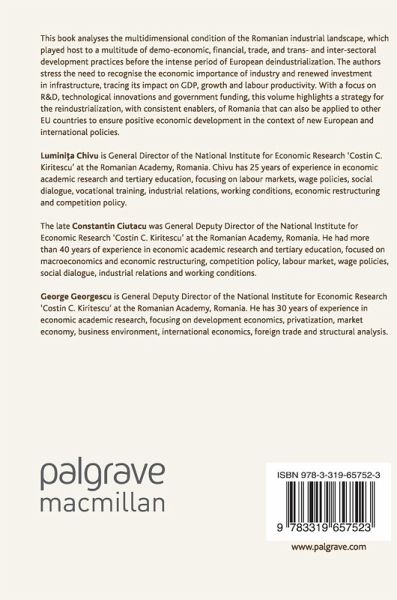 This book analyses the multidimensional condition of the Romanian industrial landscape, which played host to a multitude of demo-economic, financial, trade, and trans- and inter-sectoral development practices before the intense period of European deindustrialisation. The authors stress the need to recognise the economic importance of industry and renewed investment in infrastructure, tracing its impact on GDP, growth and labour productivity. With a focus on R&D, technological innovations and government funding, this volume highlights a strategy for the reindustrialisation, with consistent enablers, of Romania that can also be applied to other EU countries to ensure positive economic development in the context of new European and international policies.
