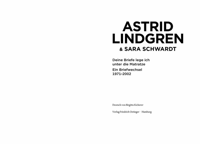 Astrid Lindgren/Sara Schwardt: "Deine Briefe lege ich unter die Matratze". Ein Briefwechsel 1971-2002.
