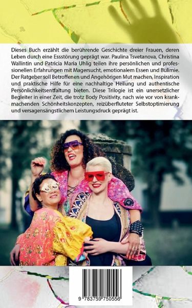 Dieses Buch erzählt die berührende Geschichte dreier Frauen, deren Leben durch eine Essstörung geprägt war. Paulina Tsvetanova, Christina Wallintin und Patricia Maria Uhlig teilen ihre persönlichen und professionellen Erfahrungen mit Magersucht, emotionalem Essen und Bulimie. Der Ratgeber soll Betroffenen und Angehörigen Mut machen, Inspiration und praktische Hilfe für eine nachhaltige Heilung und authentische Persönlichkeitsentfaltung bieten. Diese Trilogie ist ein unersetzlicher Begleiter in einer Zeit, die trotz Body Positivity, nach wie vor von krankmachenden Schönheitskonzepten, reizüberfluteter Selbstoptimierung und versagensängstlichem Leistungsdruck geprägt ist.
