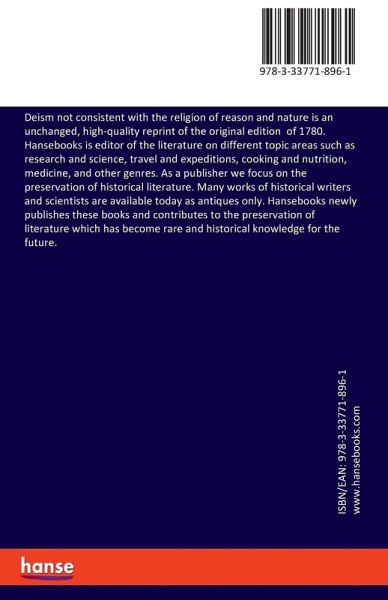 Deism not consistent with the religion of reason and nature is an unchanged, high-quality reprint of the original edition of 1780.