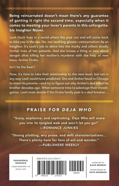 The New York Times bestselling author of the Undead Novels takes on reincarnation in this unforgettable Insighter Novel about the pitfalls in past-and love-lives… Leah Nazir lives in a world where the past can and will come back to bite you in the ass. No, not teething ghosts-reincarnation! As an Insighter, it's Leah's job to delve into the murky and (often) deadly former lives of her patients. And she knows a thing or two about danger after killing her mother's murderer with the help of new beau, Archer Drake. Isn't he the best? Now, it's time to take their relationship to the next level, but not in any way Leah could have predicted. She and Archer head to Chicago to meet his parents-and try to figure out why Archer's dad killed his brother decades ago. When someone tries to sabotage their investigation, Leah must decide if the Drake family past is a deal breaker…