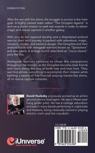 The eight companions called "Octuplet Agents", are sent on a dangerous and challenging mission, with an android warrior in a refurbished hot rod starship. They sacrifice almost everything to accomplish their mission in battling the swarm of five foot tall praying mantis like aliens, in order to rescue captive collenists. Come on this wild ride adventure as they are helped by two crazy wizards and collect friends along the way as they are chased by the evil rogue warriors called Splotchers.