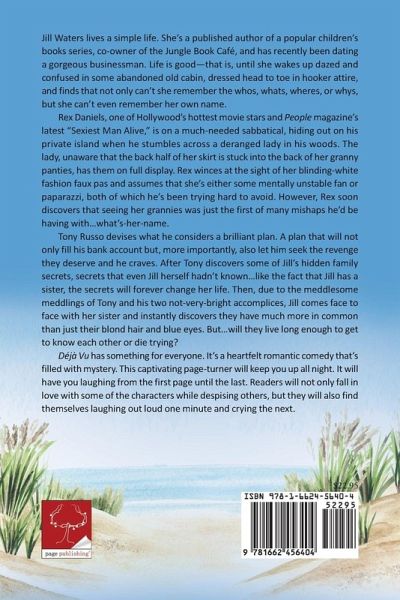 Jill Waters lives a simple life. She's a published author of a popular children's books series, co-owner of the Jungle Book Café, and has recently been dating a gorgeous businessman. Life is good-that is, until she wakes up dazed and confused in some abandoned old cabin, dressed head to toe in hooker attire, and finds that not only can't she remember the whos, whats, wheres, or whys, but she can't even remember her own name.Rex Daniels, one of Hollywood's hottest movie stars and People magazine's latest "Sexiest Man Alive," is on a much-needed sabbatical, hiding out on his private island when he stumbles across a deranged lady in his woods. The lady, unaware that the back half of her skirt is stuck into the back of her granny panties, has them on full display. Rex winces at the sight of her blinding-white fashion faux pas and assumes that she's either some mentally unstable fan or paparazzi, both of which he's been trying hard to avoid. However, Rex soon discovers that seeing her grannies was just the first of many mishaps he'd be having with...what's-her-name.Tony Russo devises what he considers a brilliant plan. A plan that will not only fill his bank account but, more importantly, also let him seek the revenge they deserve and he craves. After Tony discovers some of Jill's hidden family secrets, secrets that even Jill herself hadn't known...like the fact that Jill has a sister, the secrets will forever change her life. Then, due to the meddlesome meddlings of Tony and his two not-very-bright accomplices, Jill comes face to face with her sister and instantly discovers they have much more in common than just their blond hair and blue eyes. But...will they live long enough to get to know each other or die trying?Déjà Vu has something for everyone. It's a heartfelt romantic comedy that's filled with mystery. This captivating page-turner will keep you up all night. It will have you laughing from the first page until the last. Readers will not only fall in love with some of the characters while despising others, but they will also find themselves laughing out loud one minute and crying the next.
