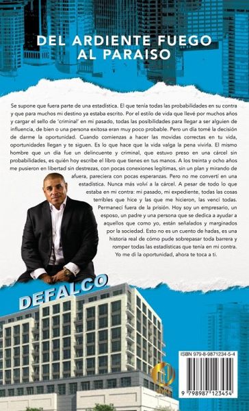 Se supone que fuera parte de una estadística. El que tenía todas las probabilidades en su contra y que para muchos mi destino ya estaba escrito. Por el estilo de vida que llevé por muchos años y cargar el sello de 'criminal' en mi pasado, todas las posibilidades para llegar a ser alguien de influencia, de bien o una persona exitosa eran muy poco probable. Pero un día tomé la decisión de darme la oportunidad. Cuando comienzas a hacer las movidas correctas en tu vida, oportunidades llegan y te siguen. Es lo que hace que la vida valga la pena vivirla. El mismo hombre que un día fue un delincuente y criminal, que estuvo preso en una cárcel sin probabilidades, es quién hoy escribe el libro que tienes en tus manos. A los treinta y ocho años me pusieron en libertad sin destrezas, con pocas conexiones legítimas, sin un plan y mirando de afuera, pareciera con pocas esperanzas. Pero no me convertí en una estadística. Nunca más volví a la cárcel. A pesar de todo lo que estaba en mi contra: mi pasado, mi expediente, todas las cosas terribles que hice y las que me hicieron, las vencí todas. Permanecí fuera de la prisión. Hoy soy un empresario, un esposo, un padre y una persona que se dedica a ayudar a aquellos que como yo, están señalados y marginados por la sociedad. Esto no es un cuento de hadas, es una historia real de cómo pude sobrepasar toda barrera y romper todas las estadísticas que tenía en mi contra. Yo me di la oportunidad, ahora te toca a ti.