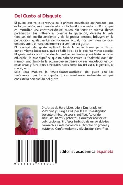 El gusto, que ya se construye en la primera escuela del ser humano, que es la gestación, será remodelado por la familia y el entorno. Por lo que es imposible una construcción del gusto, sin tener en cuenta dichos parámetros. Las influencias durante la gestación, durante la vida familiar, del medio ambiente y de la propia persona, influyen en la percepción gustativa. La neurociencia actual, nos permiten conocer detalles sobre el funcionamiento del sentido del gusto.El concepto del gusto explicado hasta la fecha, forma parte de un conocimiento inacabado, que se halla lejos de lo que realmente sucede. El gusto está construido desde muchas vertientes y evidentemente es educable, lo que significa que no solo se educa la ¿palatabilidad¿ del mismo, sino también la acción que se deriva de sus vinculaciones con otras áreas y funciones cerebrales, tales como las del asco, la justicia, la moral, etc.Este libro muestra la ¿multidimensionalidad¿ del gusto con los fenómenos que lo acompañan para enseñarnos realmente en qué consiste la percepción del gusto.
