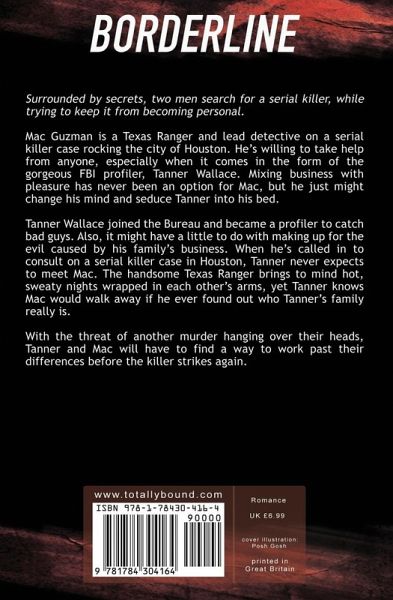 Surrounded by secrets, two men search for a serial killer, while trying to keep it from becoming personal. Mac Guzman is a Texas Ranger and lead detective on a serial killer case rocking the city of Houston. He's willing to take help from anyone, especially when it comes in the form of the gorgeous FBI profiler, Tanner Wallace. Mixing business with pleasure has never been an option for Mac, but he just might change his mind and seduce Tanner into his bed. Tanner Wallace joined the Bureau and became a profiler to catch bad guys. Also, it might have a little do with making up for the evil caused by his family's business. When he's called in to consult on a serial killer case in Houston, Tanner never expects to meet Mac. The handsome Texas Ranger brings to mind hot, sweaty nights wrapped in each other's arms, yet Tanner knows Mac would walk away if he ever found out who Tanner's family really is. With the threat of another murder hanging over their heads, Tanner and Mac will have to find a way to work past their differences before the killer strikes again.