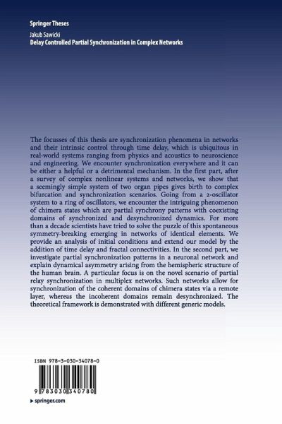 The focus of this thesis are synchronization phenomena in networks and their intrinsic control through time delay, which is ubiquitous in real-world systems ranging from physics and acoustics to neuroscience and engineering. We encounter synchronization everywhere and it can be either a helpful or a detrimental mechanism. In the first part, after a survey of complex nonlinear systems and networks, we show that a seemingly simple system of two organ pipes gives birth to complex bifurcation and synchronization scenarios. Going from a 2-oscillator system to a ring of oscillators, we encounter the intriguing phenomenon of chimera states which are partial synchrony patterns with coexisting domains of synchronized and desynchronized dynamics. For more than a decade scientist have tried to solve the puzzle of this spontaneous symmetry-breaking emerging in networks of identical elements. We provide an analysis of initial conditions and extend our model by the addition of time delay and fractalconnectivities. In the second part, we investigate partial synchronization patterns in a neuronal network and explain dynamical asymmetry arising from the hemispheric structure of the human brain. A particular focus is on the novel scenario of partial relay synchronization in multiplex networks. Such networks allow for synchronization of the coherent domains of chimera states via a remote layer, whereas the incoherent domains remain desynchronized. The theoretical framework is demonstrated with different generic models.