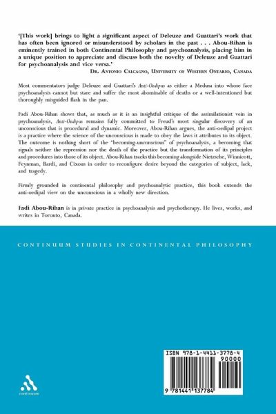 Most commentators judge Deleuze and Guattari's Anti-Oedipus as either a Medusa into whose face psychoanalysis cannot but stare and suffer the most abominable of deaths or a well-intentioned but thoroughly misguided flash in the pan. Fadi Abou-Rihan shows that, as much as it is an insightful critique of the assimilationist vein in psychoanalysis, Anti-Oedipus remains fully committed to Freud's most singular discovery of an unconscious that is procedural and dynamic. Moreover, Abou-Rihan argues, the anti-oedipal project is a practice where the science of the unconscious is made to obey the laws it attributes to its object. The outcome is nothing short of the "becoming-unconscious" of psychoanalysis, a becoming that signals neither the repression nor the death of the practice but the transformation of its principles and procedures into those of its object. Abou-Rihan tracks this becoming alongside Nietzsche, Winnicott, Feynman, Bardi, and Cixous in order to reconfigure desire beyond the categories of subject, lack, and tragedy. Firmly grounded in continental philosophy and psychoanalytic practice, this book extends the anti-oedipal view on the unconscious in a wholly new direction.