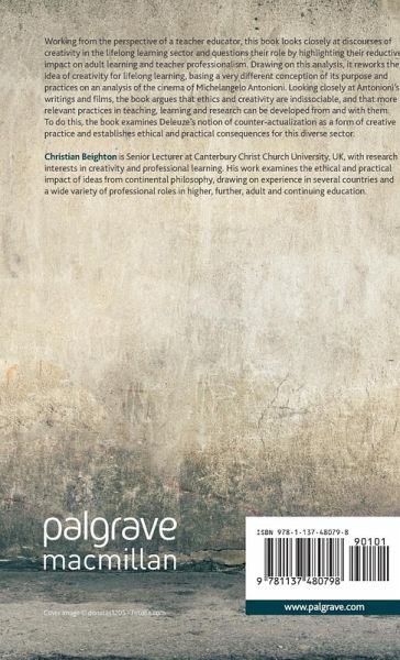 This book examines Gilles Deleuze's ideas about creativity in the context of lifelong learning, offering an original take on this important contemporary topic using cinematic parallels. Discussing Deleuze's difficult notion of 'counter-actualization' as a form of creative practice, it draws practical consequences for those across a diverse sector.