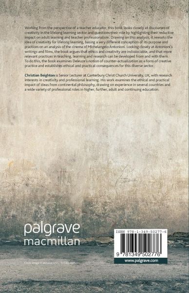 This book examines Gilles Deleuze's ideas about creativity in the context of lifelong learning, offering an original take on this important contemporary topic using cinematic parallels. Discussing Deleuze's difficult notion of 'counter-actualization' as a form of creative practice, it draws practical consequences for those across a diverse sector.