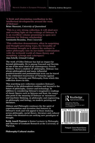 The work of Gilles Deleuze has had an impact far beyond philosophy. He is among Foucault and Derrida as one of the most cited of all contemporary French thinkers. Never a student 'of' philosophy, Deleuze was always philosophical and many influential poststructuralist and postmodernist texts can be traced to his celebrated resurrection of Nietzsche against Hegel in his Nietzsche and Philosophy, from which this collection draws its title. This searching new collection considers Deleuze's relation to the philosophical tradition and beyond to the future of philosophy, science and technology. In addition to considering Deleuze's imaginative readings of classic figures such as Spinoza and Kant, the essays also point to the meaning of Deleuze on 'monstrous' and machinic thinking, on philosophy and engineering, on philosophy and biology, on modern painting and literature. Deleuze and Philosophy continues the spirit of experimentation and invention that features in Deleuze's work and will appeal to those studying across philosophy, social theory, literature and cultural studies who themselves are seeking new paradigms of thought.