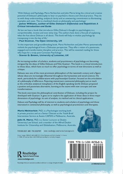 An increasing number of scholars, students and practitioners of psychology are becoming intrigued by the ideas of Gilles Deleuze and of Felix Guattari. This book aims to be a critical introduction to these ideas, which have so much to offer psychology in terms of new directions as well as critique. Deleuze was one of the most prominent philosophers of the 20th century and a figure whose ideas are increasingly influential throughout the humanities and social sciences. His work, particularly his collaborations with psychoanalyst Guattari, focused on the articulation of a philosophy of difference. Rejecting mainstream continental philosophy just as much as the orthodox analytical metaphysics of the English-speaking world, Deleuze proposed a positive and passionate alternative, bursting at the seams with new concepts and new transformations. This book overviews the philosophical contribution of Deleuze including the project he developed with Guattari. It goes on to explore the application of these ideas in three major dimensions of psychology: its unit of analysis, its method and its applications to the clinic. Deleuze and Psychology will be of interest to students and scholars of psychology and those interested in continental philosophy, as well as psychological practitioners and therapists.