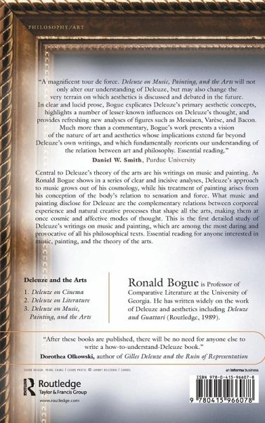 Bogue provides a systematic overview and introduction to Deleuze's writings on music and painting, and an assessment of their position within his aesthetics as a whole. "Deleuze on Music, Painting and the Arts" breaks new ground in the scholarship on Deleuze's aesthetics, while providing a clear and accessible guide to his often overlooked writings in the fields of music and painting.