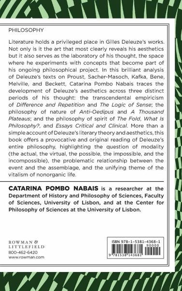 Literature holds a privileged place in Deleuze's works. Not only is it the art that most clearly reveals his aesthetics, but it also serves as the laboratory of his thought, the space where he experiments with concepts that become part of his ongoing philosophical project. In this brilliant analyses of Deleuze's texts on Proust, Sacher-Masoch, Kafka, Carmelo Bene, Melville and Beckett, Pombo Nabais traces the development of Deleuze's aesthetics across three distinct periods of his thought: the transcendental empiricism of Difference and Repetition and The Logic of Sense; the philosophy of Nature of Anti-Oedipus and A Thousand Plateaus; and the philosophy of Spirit of The Fold, What Is Philosophy? and Essays Critical and Clinical. More than a simple account of Deleuze's literary theory and aesthetics, this book offers a provocative and original reading of Deleuze's entire philosophy, highlighting the question of modality (the actual, the virtual, the possible, the impossible and the incompossible), the problematic relationship between the event and the assemblage, and the unifying theme of the vitalism of nonorganic life.