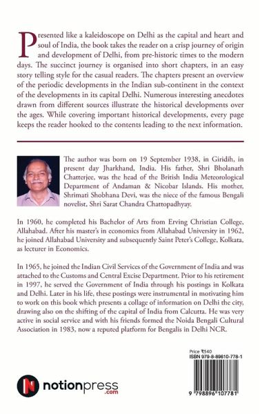 Presented like a kaleidoscope on Delhi as the capital and heart and soul of India, the book takes the reader on a crisp journey of origin and development of Delhi, from pre-historic times to the modern days. The succinct journey is organised into short chapters, in an easy story telling style for the casual readers. The chapters present an overview of the periodic developments in the Indian sub-continent in the context of the developments in its capital Delhi. Numerous interesting anecdotes drawn from different sources illustrate the historical developments over the ages. While covering important historical developments, every page keeps the reader hooked to the contents leading to the next information.