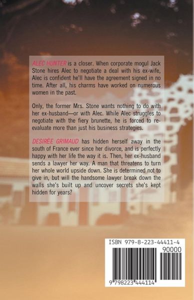 ALEC HUNTER is a closer. When corporate mogul Jack Stone hires Alec to negotiate a deal with his ex-wife, Alec is confident he'll have the agreement signed in no time. After all, his charms have worked on numerous women in the past. Only, the former Mrs. Stone wants nothing to do with her ex-husband - or with Alec. While Alec struggles to negotiate with the fiery brunette, he is forced to re-evaluate more than just his business strategies. DESIRÉE GRIMAUD has hidden herself away in the south of France ever since her divorce, and is perfectly happy with her life the way it is. Then, her…mehr