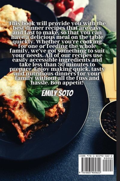 Cooking dinner doesn't have to be an overwhelming task. This book provides easy and healthy dinner ideas that the entire family can enjoy. Each meal is made using simple ingredients, most of which you probably already have in your pantry or fridge. All dishes can be prepared in under 30 minutes and require minimal prep work, making them perfect for busy nights when time is limited. The recipes in this book are designed to be nutritious, yet flavorful and satisfying. With options for everyone-vegetarians, vegans, and meat-eaters-there's something for every palate and dietary preference. Enjoy delicious meals, without spending hours in the kitchen!