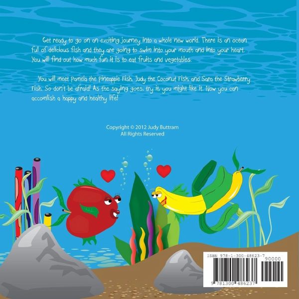 Get ready to go on an exciting journey into a whole new world. There is an ocean full of delicious fish and they are going to swim into your mouth and into your heart. You will find out how much fun it is to eat fruits and vegetables. You will meet Pamela the Pineapple Fish, Judy the Coconut Fish, and Sara the Strawberry Fish. So don't be afraid! As the saying goes, try it, you might like it. Now you can accomplish a happy and healthy life!