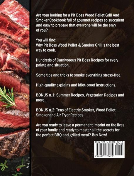 Are your looking for a Pit Boss Wood Pellet Grill And Smoker Cookbook full of gourmet recipes so succulent and easy to prepare that everyone will be the envy of you? You will find: Why Pit Boss Wood Pellet & Smoker Grill is the best way to cook. Hundreds of Carnivorous Pit Boss Recipes for every palate and situation. Some tips and tricks to smoke everything stress-free. High-quality explains and idiot-proof instructions. BONUS n.1: Summer Recipes, Vegetarian Recipes and more... BONUS n.2: Tens of Electric Smoker, Wood Pellet Smoker and Air Fryer Recipes Are you ready to leave a permanent imprint on the lives of your family and ready to master all the secrets for the perfect BBQ and grilled meal? Buy Now!