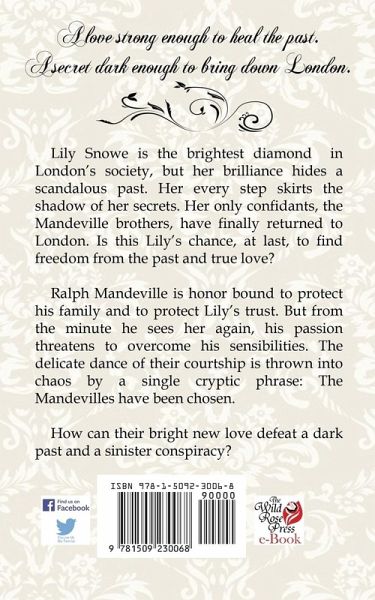 Lily Snowe is the brightest diamond in London's society, but her brilliance hides a scandalous past. Her every step skirts the shadow of her secrets. Her only confidants, the Mandeville brothers, have finally returned to London. Is this Lily's chance, at last, to find freedom from the past and true love? Ralph Mandeville is honor bound to protect his family and to protect Lily's trust. But from the minute he sees her again, his passion threatens to overcome his sensibilities. The delicate dance of their courtship is thrown into chaos by a single cryptic phrase: The Mandevilles have been chosen. How can their bright new love defeat a dark past and a sinister conspiracy?