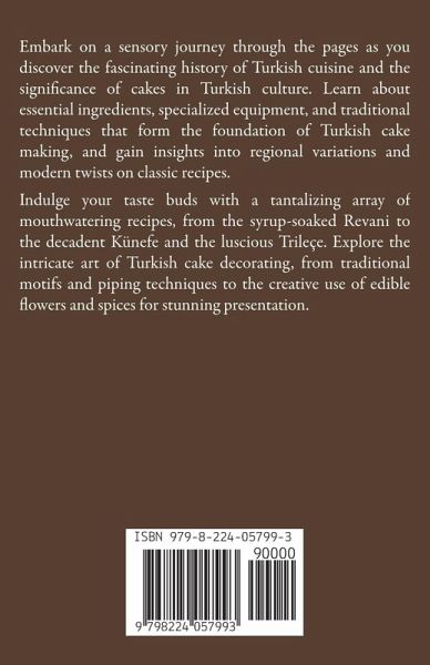 Embark on a sensory journey through the pages as you discover the fascinating history of Turkish cuisine and the significance of cakes in Turkish culture. Learn about essential ingredients, specialized equipment, and traditional techniques that form the foundation of Turkish cake making, and gain insights into regional variations and modern twists on classic recipes. Indulge your taste buds with a tantalizing array of mouthwatering recipes, from the syrup-soaked Revani to the decadent Künefe and the luscious Trileçe. Explore the intricate art of Turkish cake decorating, from traditional motifs and piping techniques to the creative use of edible flowers and spices for stunning presentation.