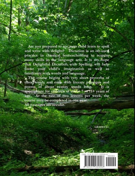 Are you prepared to see your child learn to spell and write with delight? Dictation is an oft-used practice in classical homeschooling to acquire many skills in the language arts. It is my hope that Delightful Dictation with Spelling will help foster your child's imagination as well as familiarity with words and language. The course begins with very short proverbs of three words and ends with literary passages and poems of about twenty words long. It is appropriate for children of about 7 to 11+ years of age. At the rate of two lessons per week, the course may be completed in one year. All passages are secular.