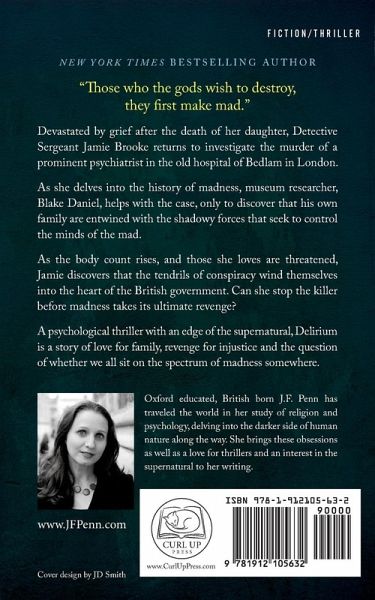 "Those who the Gods wish to destroy, they first make mad." Devastated by grief after the death of her daughter, Detective Sergeant Jamie Brooke returns to investigate the murder of a prominent psychiatrist in the old hospital of Bedlam in London. As she delves into the history of madness, museum researcher, Blake Daniel, helps with the case, only to discover that his own family is entwined with the shadowy forces that seek to control the minds of the mad. As the body count rises, and those she loves are threatened, Jamie discovers that the tendrils of conspiracy wind themselves into the heart…mehr