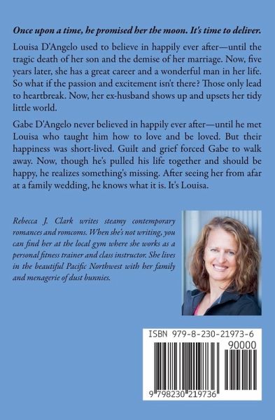 Once upon a time, he promised her the moon. It's time to deliver. Louisa D'Angelo used to believe in happily ever after-until the tragic death of her son and the demise of her marriage. Now, five years later, with her life back in order, she has a great career and a wonderful man in her life. So what if the passion and excitement isn't there? In her book, passion and excitement only lead to heartbreak. Then, her ex-husband shows up and upsets her tidy little world. Gabe D'Angelo never believed in happily ever after-until he met Louisa who taught him how to love and be loved. But their happiness was short-lived. Guilt and grief forced Gabe to walk away. Now, though he's pulled his life together and should be happy, he realizes something's missing. After seeing her from afar at a family wedding, he knows what it is. It's Louisa. The problem is convincing her she's still in love with him.