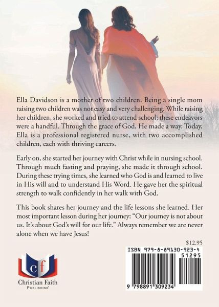 Ella Davidson is a mother of two children. Being a single mom raising two children was not easy and very challenging. While raising her children, she worked and tried to attend school; these endeavors were a handful. Through the grace of God, He made a way. Today, Ella is a professional registered nurse, with two accomplished children, each with thriving careers. Early on, she started her journey with Christ while in nursing school. Through much fasting and praying, she made it through school. During these trying times, she learned who God is and learned to live in His will and to understand His Word. He gave her the spiritual strength to walk confidently in her walk with God. This book shares her journey and the life lessons she learned. Her most important lesson during her journey: "Our journey is not about us. It's about God's will for our life." Always remember we are never alone when we have Jesus!