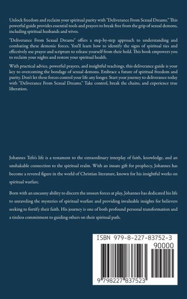 Unlock freedom and reclaim your spiritual purity with "Deliverance From Sexual Dreams." This powerful guide provides essential tools and prayers to break free from the grip of sexual demons, including spiritual husbands and wives. "Deliverance From Sexual Dreams" offers a step-by-step approach to understanding and combating these demonic forces. You'll learn how to identify the signs of spiritual ties and effectively use prayer and scripture to release yourself from their hold. This book empowers you to reclaim your nights and restore your spiritual health. With practical advice, powerful prayers, and insightful teachings, this deliverance guide is your key to overcoming the bondage of sexual demons. Embrace a future of spiritual freedom and purity. Don't let these forces control your life any longer. Start your journey to deliverance today with "Deliverance From Sexual Dreams." Take control, break the chains, and experience true liberation.