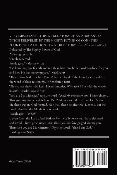 VERY IMPORTANT - THIS IS TRUE STORY OF AN AFRICAN - EX WITCH DELIVERED BY THE MIGHTY POWER OF GOD - THIS BOOK IS NOT A FICTION. IT is A TRUE STORY of an African Ex-Witch Delivered by The Mighty Power of God. As You go preach... "Freely received, Freely give." - Matthew 10:7 "Go home to your friends and tell them how much the Lord has done for you and how He has mercy on you." (Mark 5:19) "They triumphed over him (Satan) by the blood of the Lamb(Jesus) and by the word of their testimony..." (Revelation 12:11) "Blessed are those who keep His testimonies, Who seek Him with the whole heart!" ---Psalms 119:2 NKJV "You are My witnesses," says the Lord , "And My servant whom I have chosen, That you may know and believe Me, And understand that I am He. Before Me there was no God formed, Nor shall there be after Me. I, even I, am the Lord , And besides Me there is no savior. -Isaiah 43:10-11 NKJV I, even I, am the Lord , And besides Me there is no savior. I have declared and saved, I have proclaimed, And there was no foreign god among you; Therefore you are My witnesses," Says the Lord , "that I am God." - Isaiah 43:11-12 NKJV My name is Emmanuel Eni - A True Life Story of Gods mercy, grace and unfailing love upon my life. The bible says: "Train up a child in the way he should go and when he is old, he will not depart from it" (Proverbs 22: 6). This is a story of God's works - mighty, wonderful and mysterious - in obedience to the command of JESUS CHRIST to me saying: "Go and testify what I have done for you."One usually thinks of misfortune as an act of fate and that we can do nothing to alter the events of our lives. To an extent this is true. In the case of a child of God, his life is planned1 (Proverbs 16: 9). Whether that plan is fulfilled or not depends on a number of factors, the individual's closeness to God, his view about the ultimate purpose of life, and the socio-spiritual environment he finds himself. The course of your life is challenged by some external factors. The crisis is reached when you give over your WILL one way or the other, for good or evil. You can love or hate. You can wish to understand or misunderstand. The will to obey is the greatest force of a new born Christian, while the will to disobey is the most destroying force of the sinner. A child when left alone in the world is controlled by one of two powers: good or bad, right or wrong, God or the devil. Everyone is challenged by these two forces of life, and each must choose which life he must live. And I believe that is what the Bible says: THESE A 2025 UPDATED Publication
