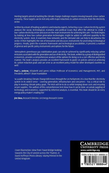 Meeting targets aimed at tackling the climate change challenge requires moving towards a low-carbon economy. These targets can only be met with major reductions in carbon emissions from the electricity sector. Written by a team of leading academics and industry experts, Delivering a Low Carbon Electricity System analyses the social, technological, economic and political issues that affect the attempt to create a low-carbon electricity sector and assesses the main instruments for achieving this aim. The book begins by looking at how low-carbon generation technologies might be added in sufficient quantity to the electricity system. Next, it examines how networks and the demand side can help to decarbonise the sector. It then highlights the role of innovation and discusses instruments for promoting technological progress. Finally, given the economic framework and technological possibilities, it presents a number of general and specific policy instruments and options for the future.