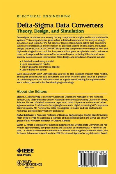 Steven R. Nosworthy is currently worldwide Operations Manager for the Wireless, Telecom, and Video Business Units of Motorola Semiconductor (Analog Division) in Tempe, Arizona. He has published numerous papers and holds 18 patents in the area of delta-sigma converters. In addition to having taught courses in digital processing at Pennsylvania State University, Mr. Nosworthy holds two degrees in music, and has performed in numerous professional symphony orchestras. Richard Schreier is Associate Professor of Electrical Engineering at Oregon State University. From 1986 to 1988 he worked as a Member of the Scientific Staff in the CMOS cell library group of Bell-Northern Research in Ottawa, Canada. Gabor C. Temes is Professor of Electrical Engineering at Oregon State University. He has written approximately 250 publications and is author of several books. A Fellow of the IEEE, DR. Temes has received numerous IEEE awards, including the Centennial Medal, the Technical Achievement Award, and the IEEE Circuits and Systems Society Education Award.