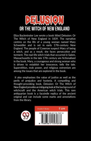 Eliza Buckminster Lee wrote a book titled Delusion: Or The Witch of New England in 1839. The narrative centres on the life of a young woman named Mary Schweidler and is set in early 17th-century New England. The people of Coserow suspect Mary of being a witch, and as a result, she faces persecution and torment. The real-life witch trials that occurred in Salem, Massachusetts in the late 17th century are fictionalised in the book. Mary, a courageous and strong woman who is driven to establish her innocence, tells the tale. Superstition, mob power, and religious extremism are among the issues that are explored in the book. It also emphasises the value of justice as well as the perils of prejudice and hysteria. A compelling and thought-provoking book, Delusion: Or The Witch of New England provides an intriguing look at the background of witchcraft and the American witch trials. This rare antiquarian book is a facsimile replica of the ancient original and can include some marks and annotations from the library.