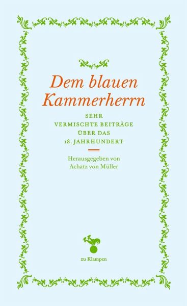 Heiterkeit, Esprit und scharfe Kritik, Seelenkunde und Mitgefühl kennzeichnen das geistige 18. Jahrhundert. Die Beiträge des Bandes widmen sich diesem Zeitraum und seinem Nachwirken; Musik, Literatur, Kunst, Geschichte und Denken haben ihre Auftritte. Sein Titel geht auf Wolf von Niebelschütz' 1949 erschienenen Roman 'Der Blaue Kammerherr' zurück, der das gesellschaftliche und kulturelle Niveau jener aufgeklärten Modellepoche formulierte.